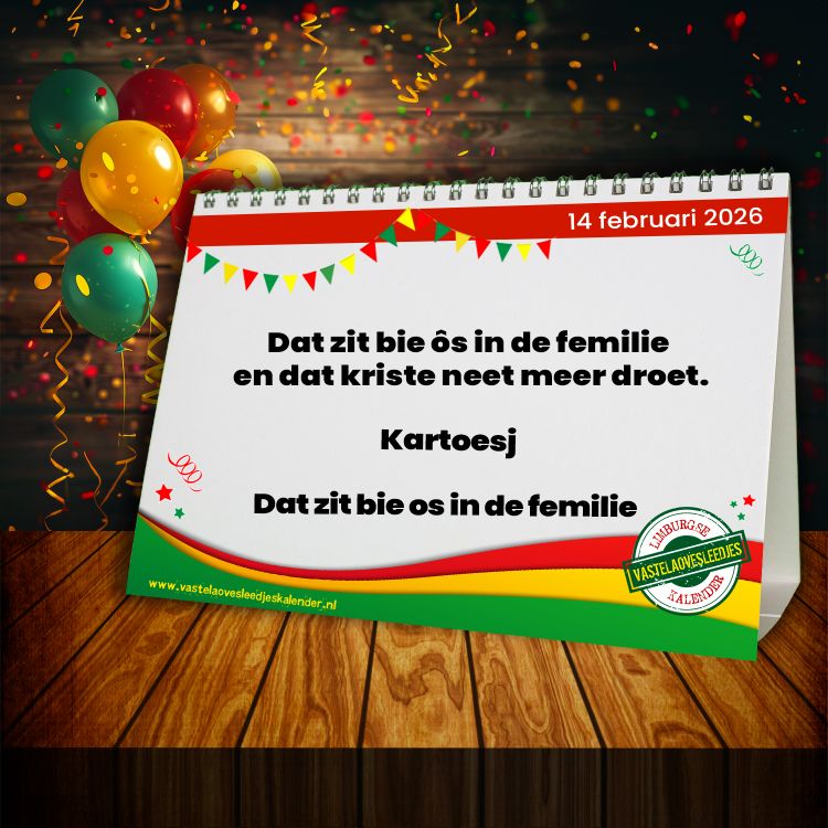 Iedere dag opnieuw verschijnt er een leuke of opmerkelijke zin uit een van de schitterende vastelaovesliedjes die ons Limburg rijk is. Laat je dagelijks verrassen. Natuurlijk is de kalender ook te volgen op Facebook en Instagram!