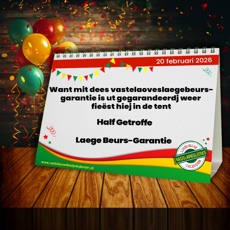 Iedere dag opnieuw verschijnt er een leuke of opmerkelijke zin uit een van de schitterende vastelaovesliedjes die ons Limburg rijk is. Laat je dagelijks verrassen. Natuurlijk is de kalender ook te volgen op Facebook en Instagram!
