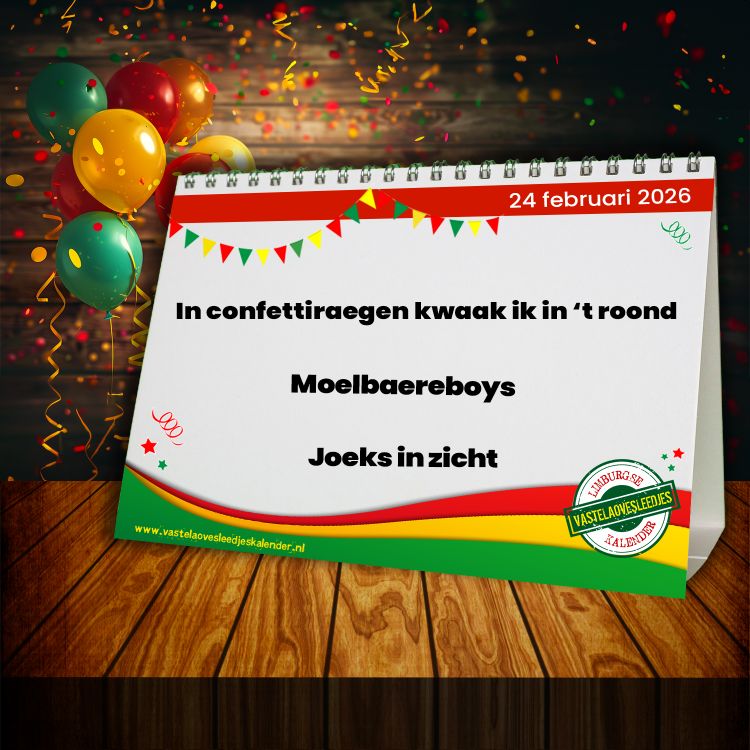 Iedere dag opnieuw verschijnt er een leuke of opmerkelijke zin uit een van de schitterende vastelaovesliedjes die ons Limburg rijk is. Laat je dagelijks verrassen. Natuurlijk is de kalender ook te volgen op Facebook en Instagram!