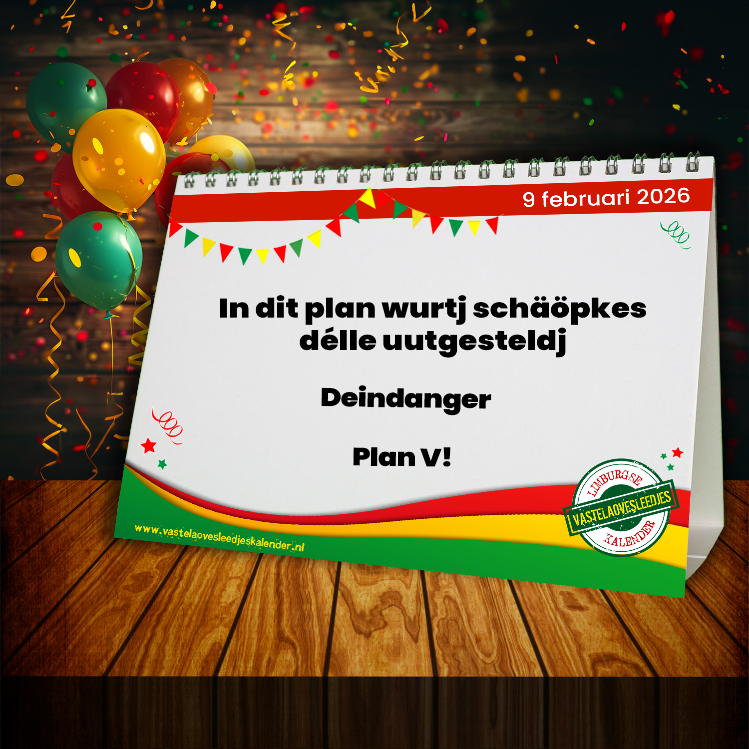 Iedere dag opnieuw verschijnt er een leuke of opmerkelijke zin uit een van de schitterende vastelaovesliedjes die ons Limburg rijk is. Laat je dagelijks verrassen. Natuurlijk is de kalender ook te volgen op Facebook en Instagram!